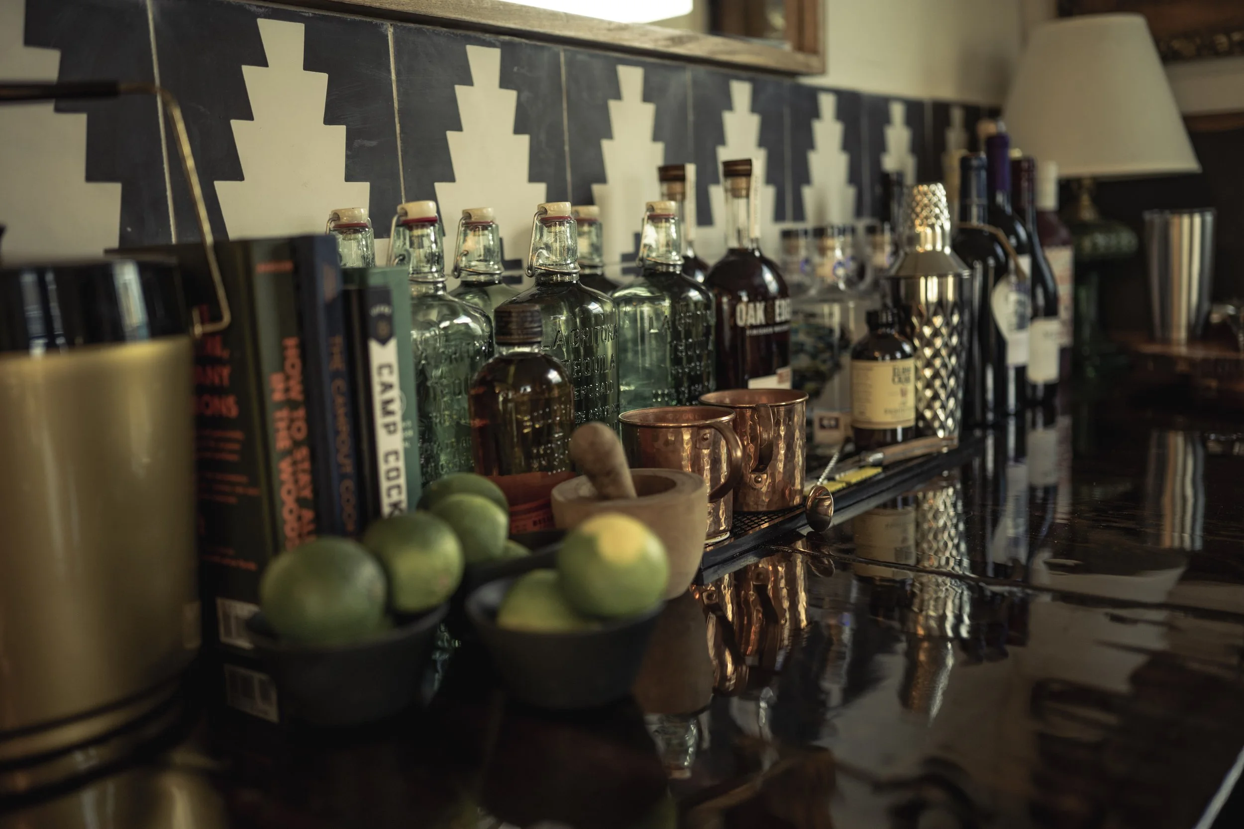We had been dreaming up a place to gather, share, and inspire creativity among the stunning backdrops of Paradise Valley, Montana, for a long time. That dream manifested itself as 20 acres of mountain landscapes, a sanctuary where natural beauty meets creative expression. At the heart of the property is El Coyote, a Spanish-style casita with a full bar and lounge, blending Wild West charm with Spanish flair. This gathering space, with its old-country nostalgia, offers a warm and inviting atmosphere — a place to sip coffee on the porch as the sun rises or to enjoy a drink as the day winds down. The bar and the cozy seating areas, makes El Coyote the perfect setting for connection and creativity.